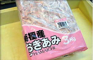 生沖アミとボイル沖アミを半分ずつパックにしています。