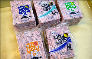 約3kgにカットしており、粒のサイズもM〜Lで主に撒きエサ用として使用されます。
