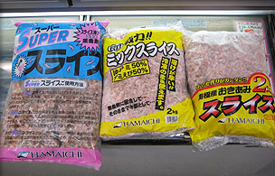 沖アミ、アミエビもジュースを配合したスーパースライス、アミエビと沖アミを50%づつ配合したミックススライスなどもあります。